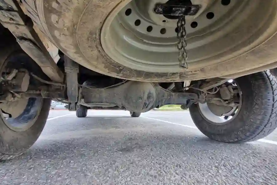 Подвеска FOTON TUNLAND V7 без каких-либо сюрпризов. Спереди независимая рычажная, сзади стоят рессоры и неразрезной мост. Сразу хочется отметить, что обычно задняя подвеска любого пикапа очень жестко отрабатывает на любых неровностях, особенно лежачих полицейских. Однако, здесь рессоры такой конструкции, что машина уже откровенно не "козлит" и ехать приятно даже с пустым кузовом.